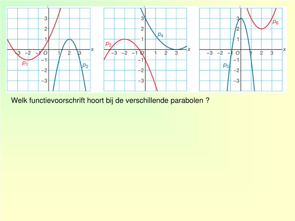 Welk functievoorschrift hoort bij de verschillende parabolen ?