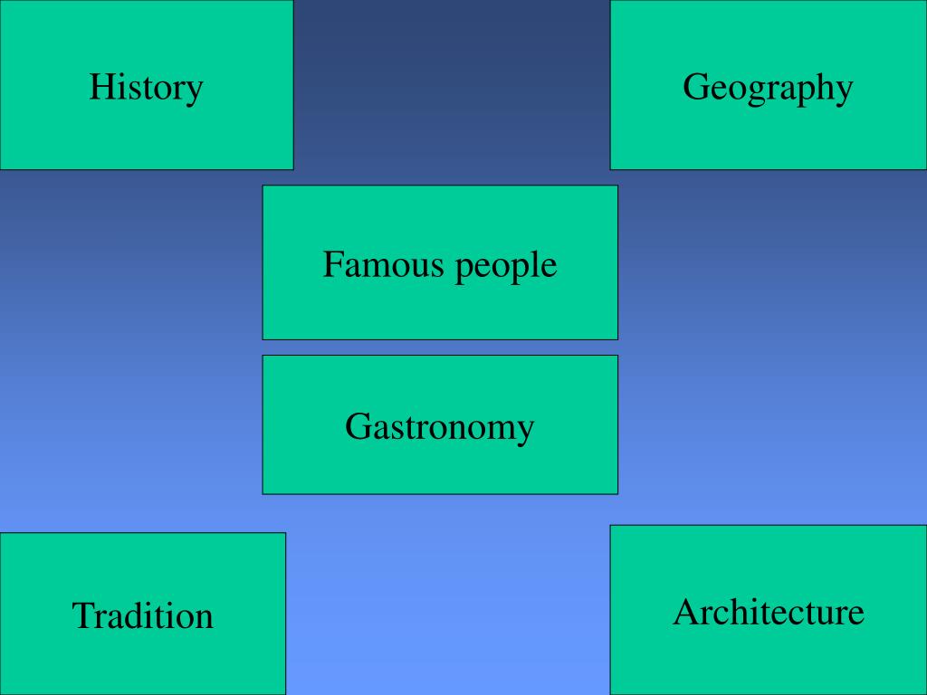 History Geography Famous people Gastronomy Architecture Tradition