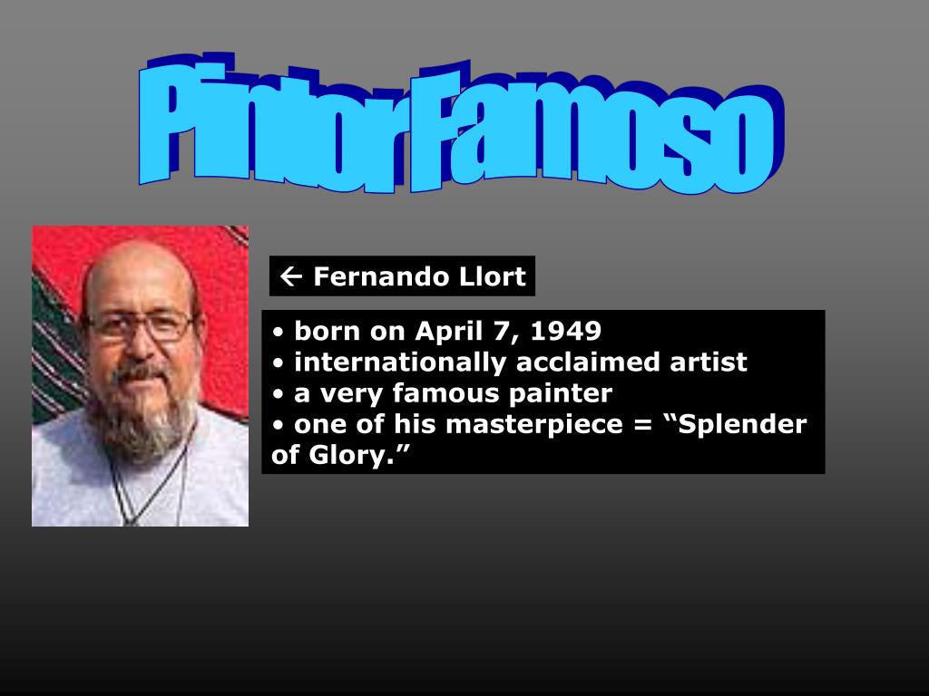 Pintor Famoso Fernando Llort • born on April 7, 1949 • internationally acclaimed artist • a very famous painter • one of his masterpiece = “Splender of Glory.”