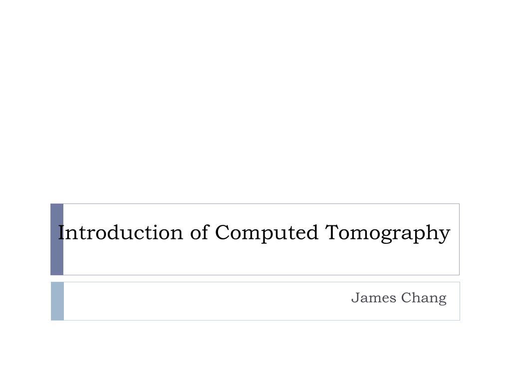 Introduction of Computed Tomography. James Chang. History of CT. Radon-Nikodym theory of Johann.Radon G.N.Huunsfeild invented CT in 1972 Nobel Prize in Physiology or Medicine 1979. The generation of CT. Translate-Rotate 1 st : pencil beam X-ray and single detector