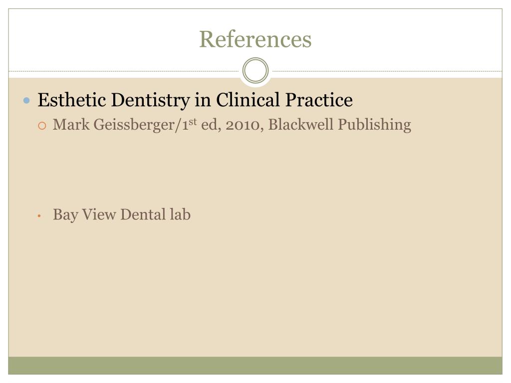 References • Esthetic Dentistry in Clinical Practice • Mark Geissberger/1sted, 2010, Blackwell Publishing • Bay View Dental lab