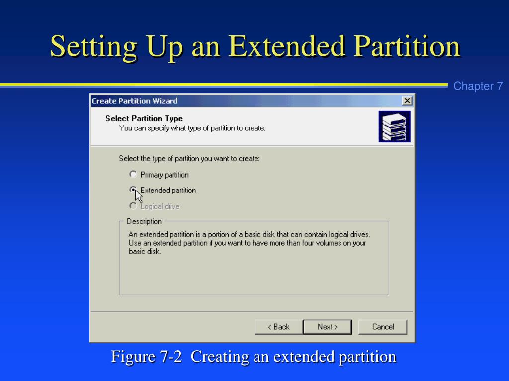Setting Up an Extended Partition Figure 7-2 Creating an extended partition