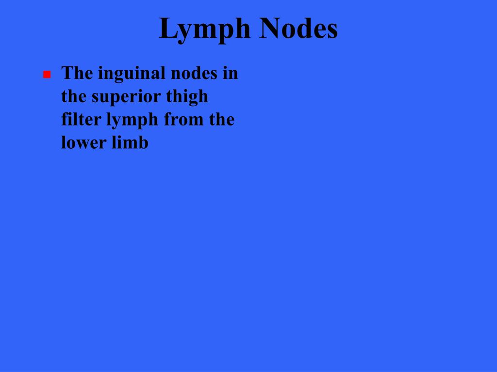 Lymph Nodes • The inguinal nodes in the superior thigh filter lymph from the lower limb