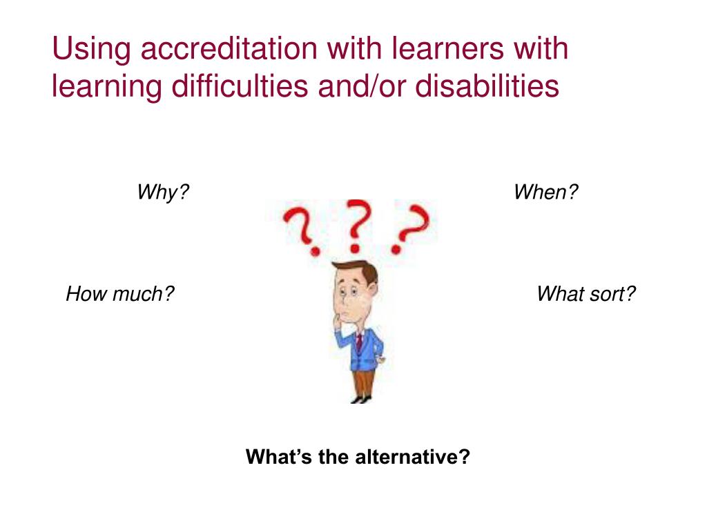 Using accreditation with learners with learning difficulties and/or disabilities • Why? When? • How much? What sort? What’s the alternative?