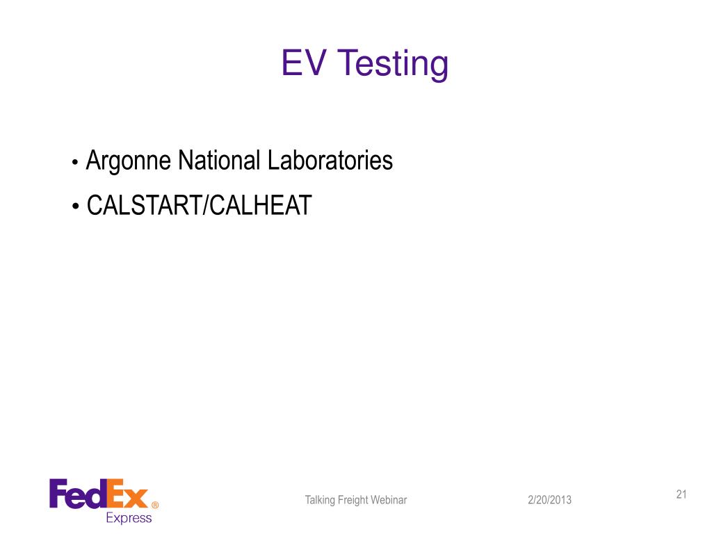 EV Testing Talking Freight Webinar Argonne National Laboratories CALSTART/CALHEAT