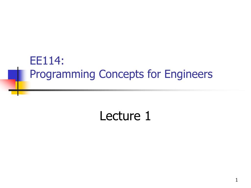 EE114: Programming Concepts for Engineers. Lecture 1. Introduction. Why C? C is a general purpose programming language Efficient and popular Other programming languages: C++, Java, Matlab, etc Software Microsoft Visual Studio C++ 6.0 (included in the book)