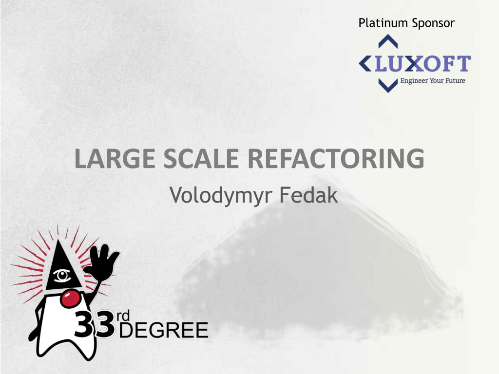 large scale Refactoring. Volodymyr Fedak. Who Am I. Solution Architect at SoftServe with 9 + years experience in IT Ongoing project: Significant efforts are dedicated to the following quality attributes: testability, extensibility, maintainability
