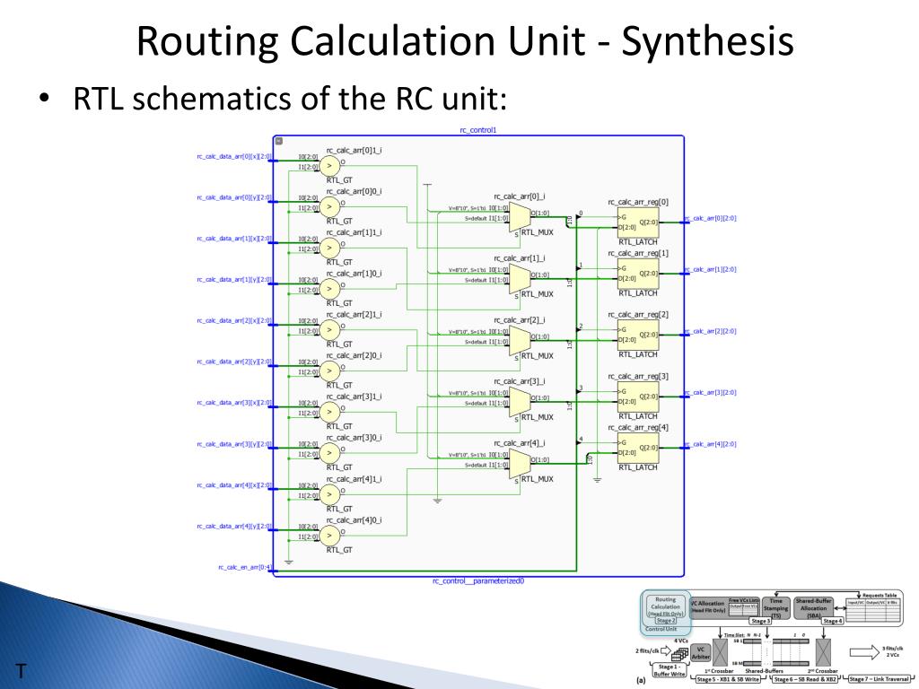 Routing Calculation Unit - Synthesis • Utilization summary of the RC unit : • The longest path time was 1.34[ns] T