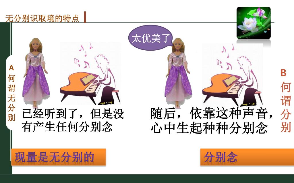 请加入标题 无分别识取境的特点 太优美了 A何谓无分别 B何谓分别 随后,依靠这种声音,心中生起种种分别念 已经听到了,但是没有产生任何分别念 现量是无分别的 分别念