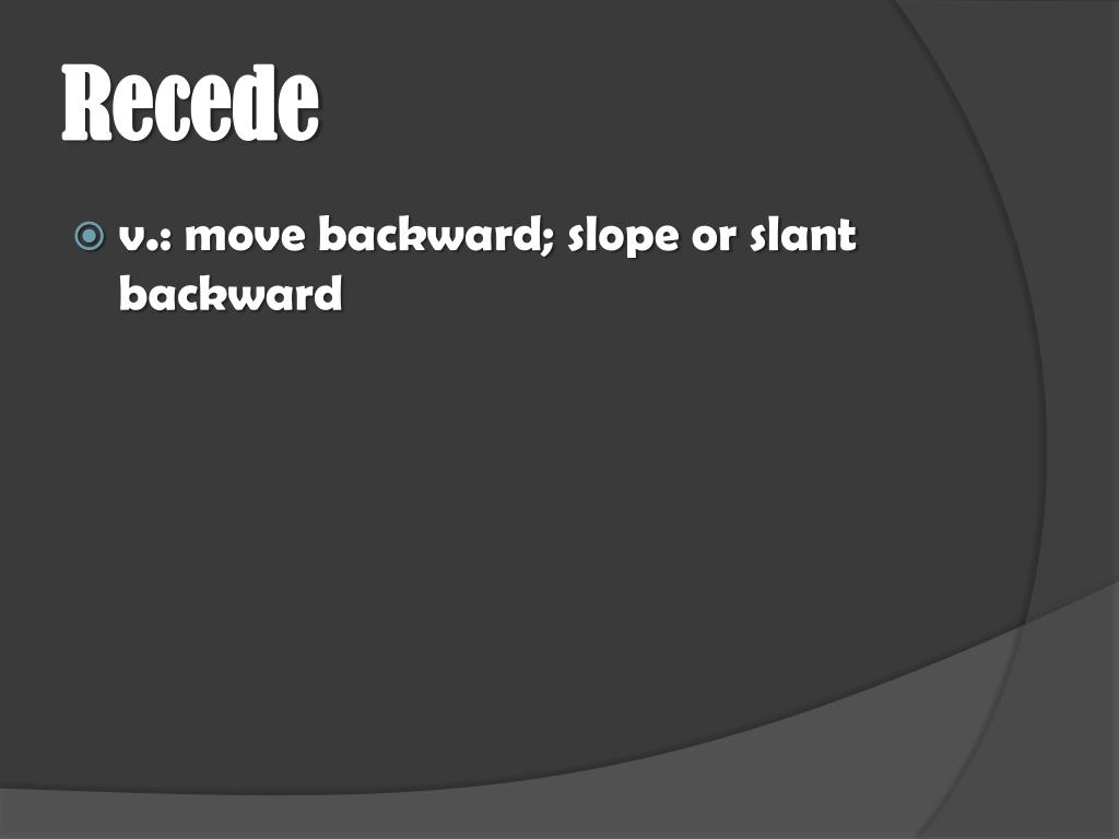 Recede • v.: move backward; slope or slant backward