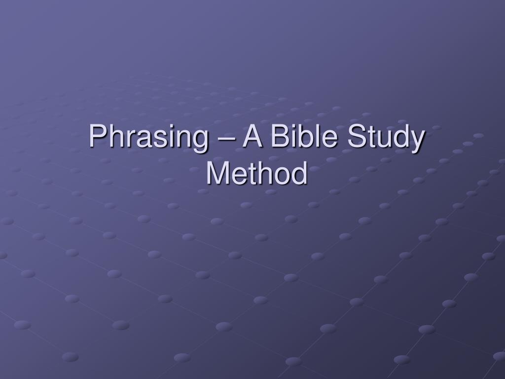 Introduction to Phrasing • Phrasing is a way of visually dividing up a section of Scripture in order to see the author’s flow of thought and thus understand the passage. • Phrasing is different than sentence diagramming and is generally more useful in Bible study. • *****In this section, the author uses the term “phrase” in a broader way than in chapter 7. Don’t be confused!