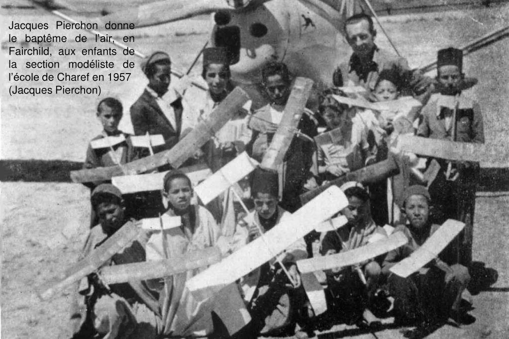 Jacques Pierchon donne le baptême de l’air, en Fairchild, aux enfants de la section modéliste de l’école de Charef en 1957 (Jacques Pierchon)