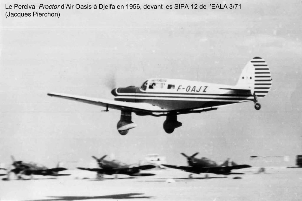 Le Percival Proctor d’Air Oasis à Djelfa en 1956, devant les SIPA 12 de l’EALA 3/71 (Jacques Pierchon)