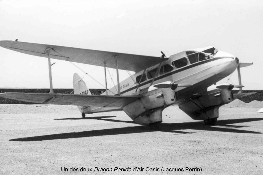 Les compagnies locales Aussitôt après la guerre, plusieurs compagnies se lancent dans le taxi aérien ou les lignes régionales en profitant des avions des surplus de guerre disponibles à bon compte. Aux bimoteurs anglais De Havilland Dragon Rapide et américains Beechcraft 18 et Lockheed 12, authentiques bimoteurs de liaison, s’ajoutent les bimoteurs anglais Avro 19 Anson et Airspeed AS65 Consul et l’américain Cessna UC-78 Bobcat, plutôt destinés à l’entraînement au pilotage, à la navigation et au bombardement et qui sont démilitarisés en conservant souvent le nez vitré nécessaire à leurs activités antérieures. Quelques monomoteurs, d’un emploi plus souple, rejoignent ce parc, tels que le Fairchild 24, le Percival Proctor, le Nord 1203 Norécrin et, plus tard, le Jodel Mousquetaire et le Max-Holte Broussard. L’emploi de ces avions, d’une capacité de quatre à douze places, devient indispensable, à partir de 1955, pour satisfaire les besoins très importants suscités par l‘exploitation du pétrole, la mise en valeur de l’Algérie et du Sahara et les transports intérieurs. Les compagnies connaissent alors une activité intense et leurs avions sillonnent le territoire aux mains des nombreux anciens pilotes militaires démobilisés qui effectuent souvent beaucoup plus de 100 heures de vol par mois. Les avions modernes, confortables et plus fiables, comme le Beechcraft Twin Bonanza, le Piper Apache ou l’Aérocommander, apparaissent trop tard et sont trop onéreux pour être utilisés en grand nombre. Des expériences malheureuses sont faites avec l’avion tchèque Super Aero 45 dans ce domaine où la rusticité du Dragon Rapide est la plus appréciée.