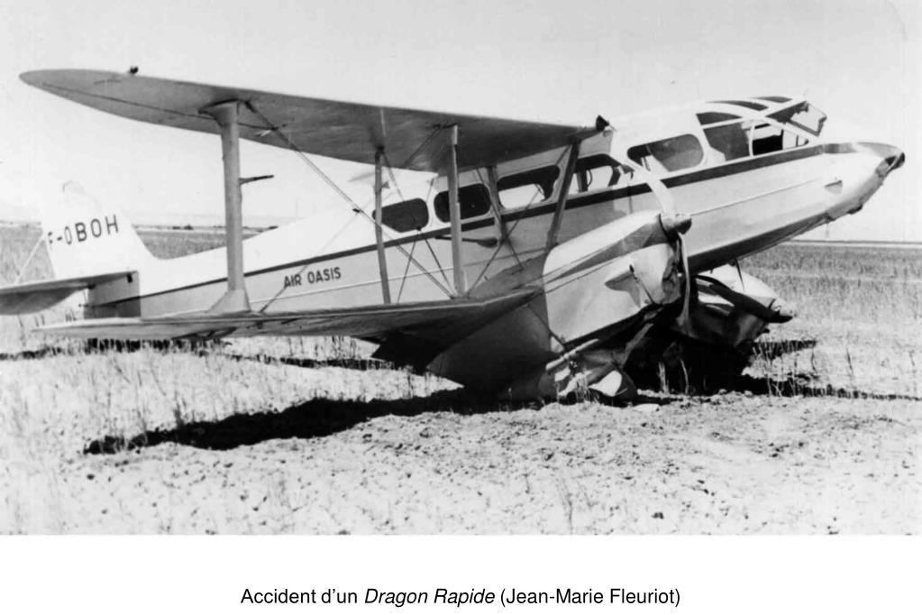 Le Dragon Rapide F-OBHI accidenté à Fort-Flatters en août 1960, sans mal pour le pilote Eichelbrenner (Roland Richer de Forges)