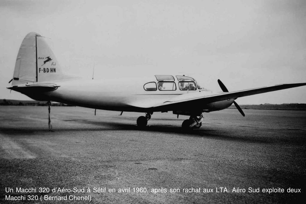 Un Macchi 320 d’Aéro-Sud à Sétif en avril 1960, après son rachat aux LTA. Aéro Sud exploite deux Macchi 320 ( Bernard Chenel)