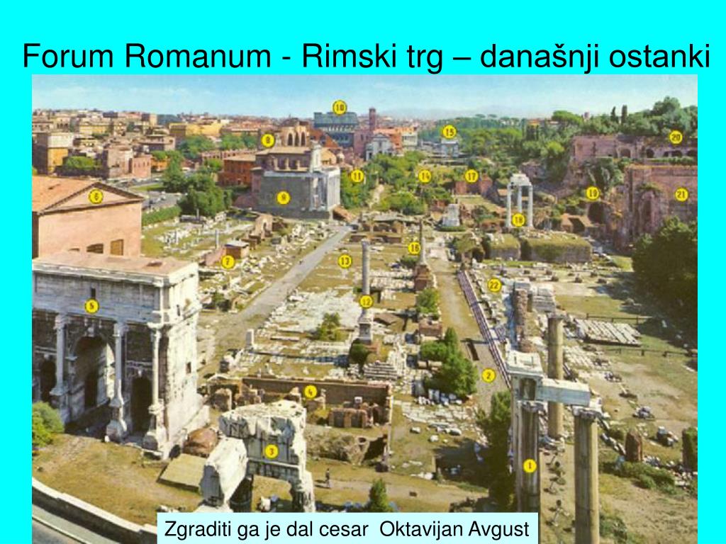 Forum Romanum - Rimski trg – današnji ostanki Zgraditi ga je dal cesar Oktavijan Avgust