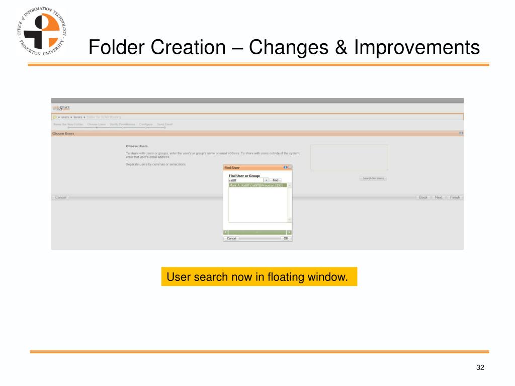 Folder Creation – Changes & Improvements User search now in floating window.