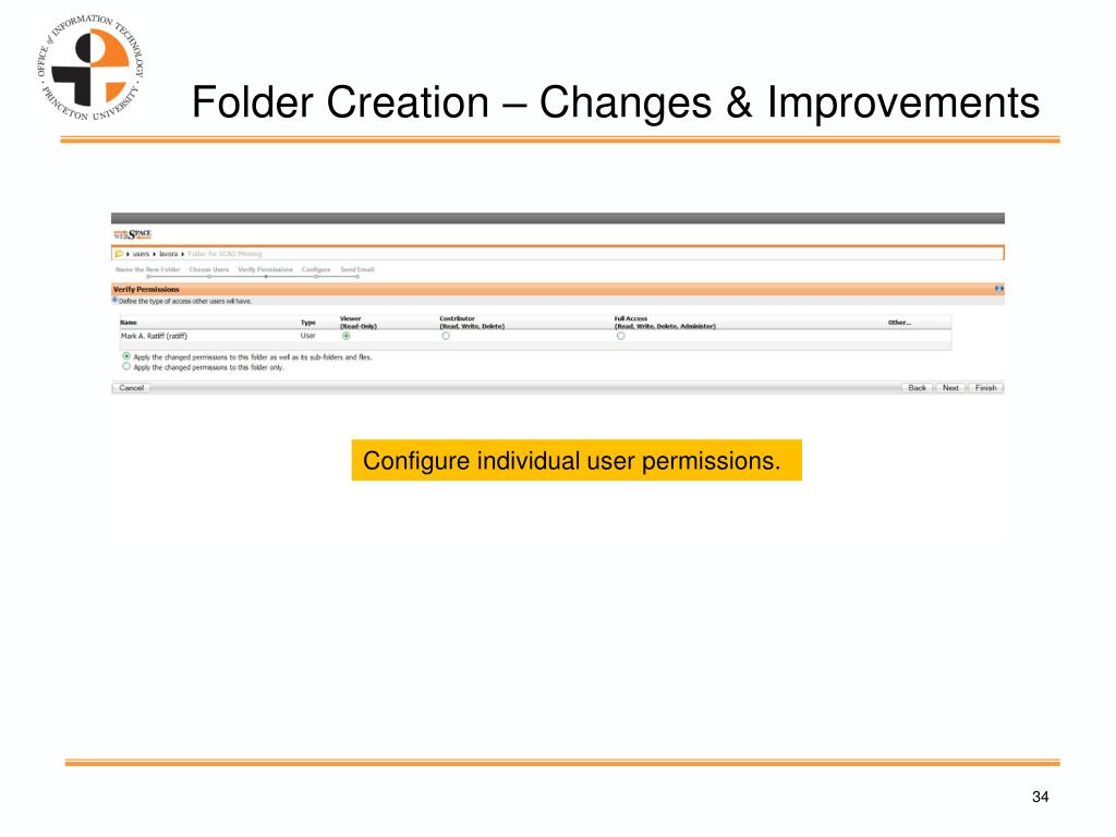 Folder Creation – Changes & Improvements Configure individual user permissions.