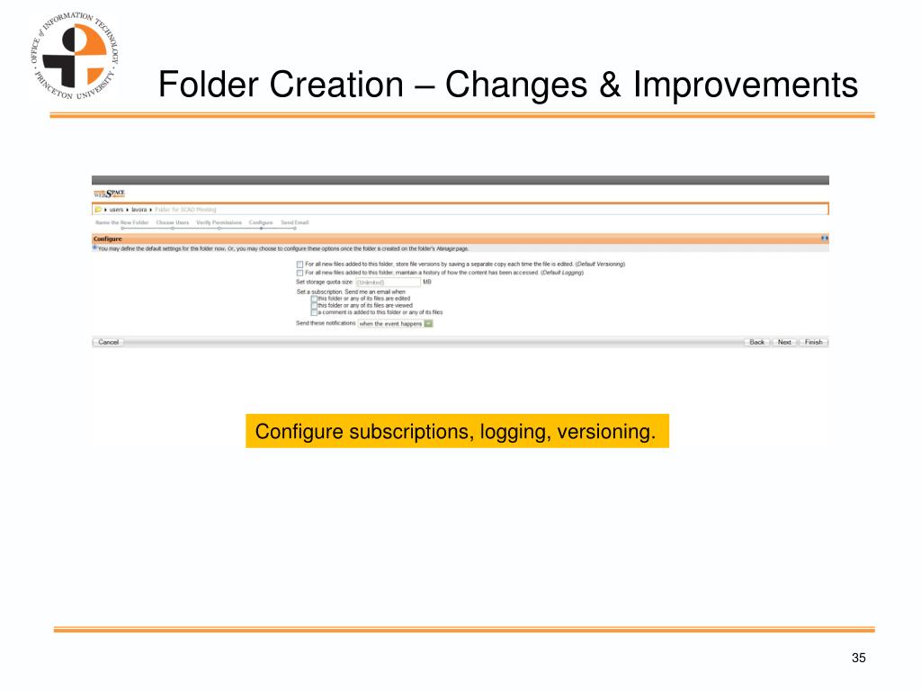 Folder Creation – Changes & Improvements You may finish at this point or go on to configure.