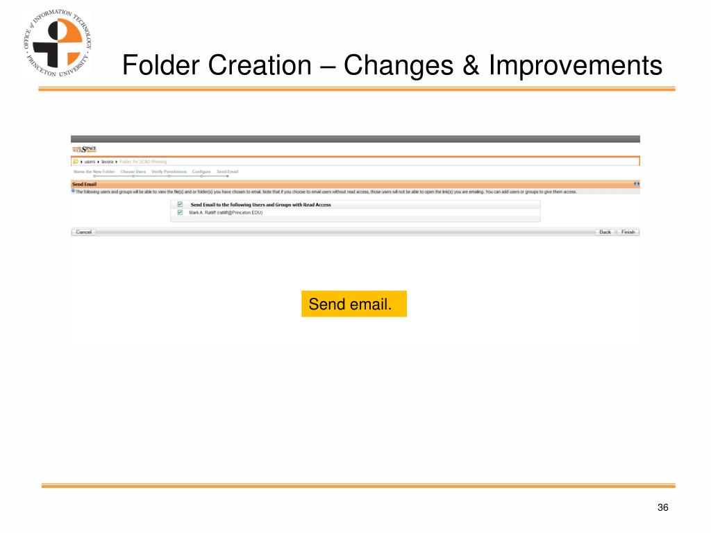 Folder Creation – Changes & Improvements Send email.
