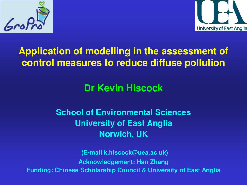 Application of modelling in the assessment of control measures to reduce diffuse pollution. Dr Kevin Hiscock School of Environmental Sciences University of East Anglia Norwich, UK (E-mail k.hiscock@uea.ac.uk) Acknowledgement: Han Zhang