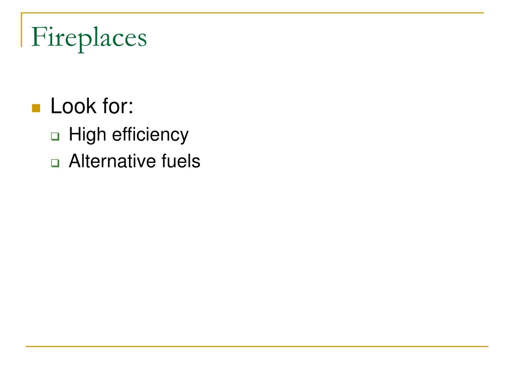 Fireplaces • Look for: • High efficiency • Alternative fuels