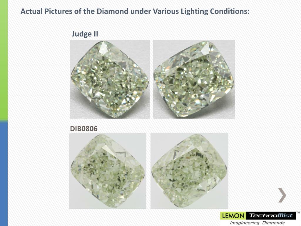 Actual Pictures of the Diamond under Various Lighting Conditions: Judge II DIB0806