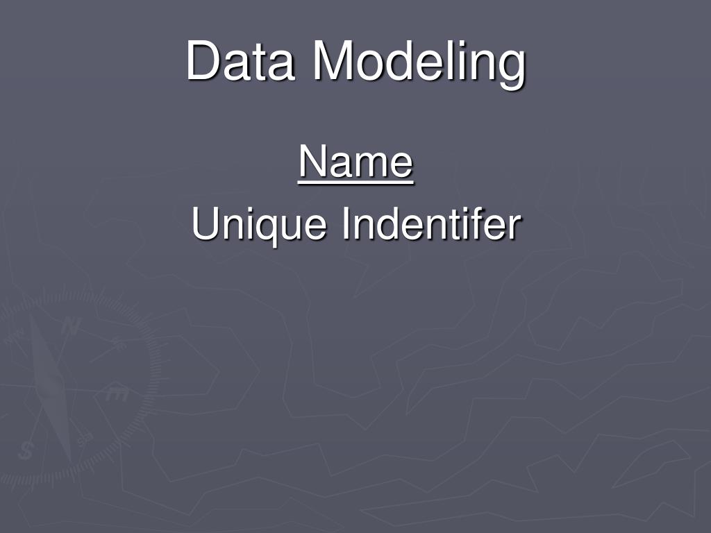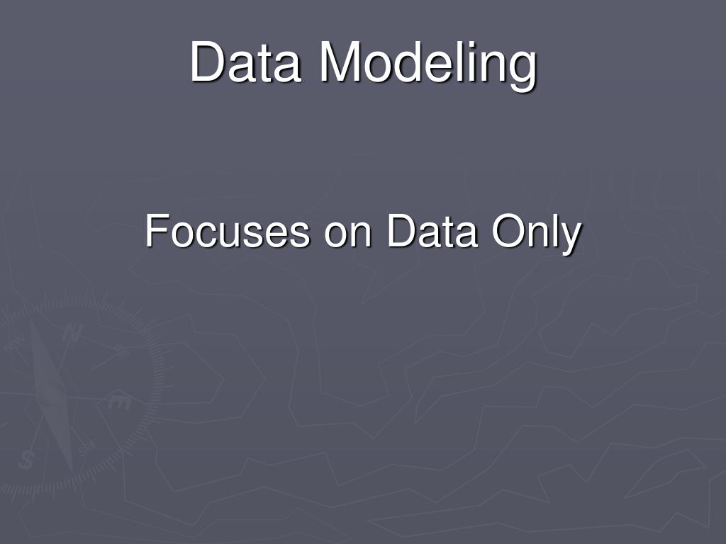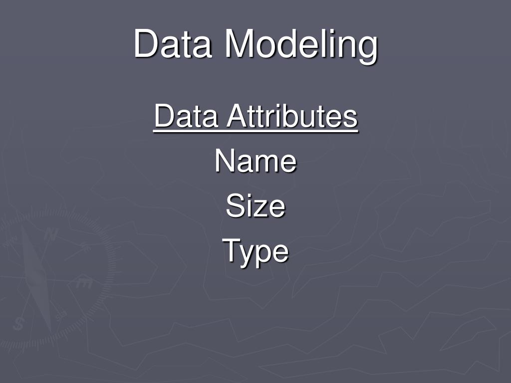 IT 21103/41103. System Analysis & Design. Chapter 04. Data Modeling. Data Modeling. Concerned with the data flow of an organization. Data Modeling. Focuses on Data Only. Data Modeling. Data Attributes Name Size Type. Data Modeling. Name Unique Indentifer. Data Modeling. Size