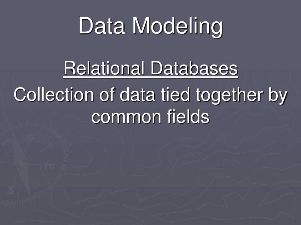 Data Modeling Relational Databases Collection of data tied together by common fields