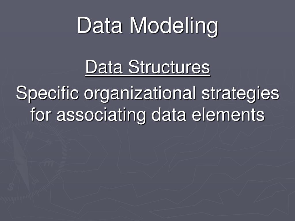 Data Modeling Data Structures Specific organizational strategies for associating data elements
