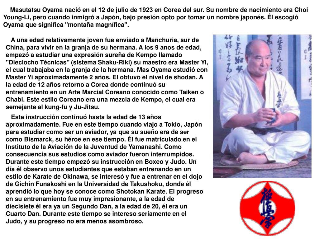 Fundador Del Kyokushin Karate Biografía de Sosai Mas Oyama Sonsai Mas Oyama 1923-1994
