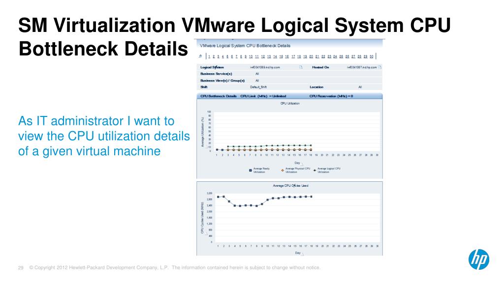 SM Virtualization VMware Logical System CPU Bottleneck Details • As IT administrator I want to view the CPU utilization details of a given virtual machine