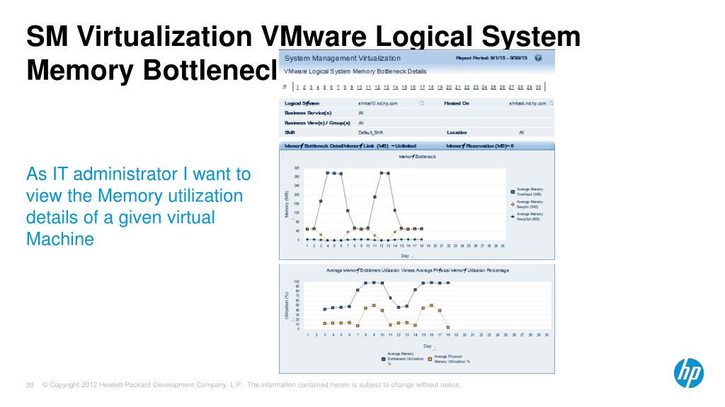 SM Virtualization VMware Logical System Memory Bottleneck Details • As IT administrator I want to view the Memory utilization details of a given virtual Machine
