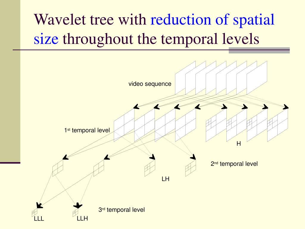 Wavelet tree with reduction of spatial size throughout the temporal levels