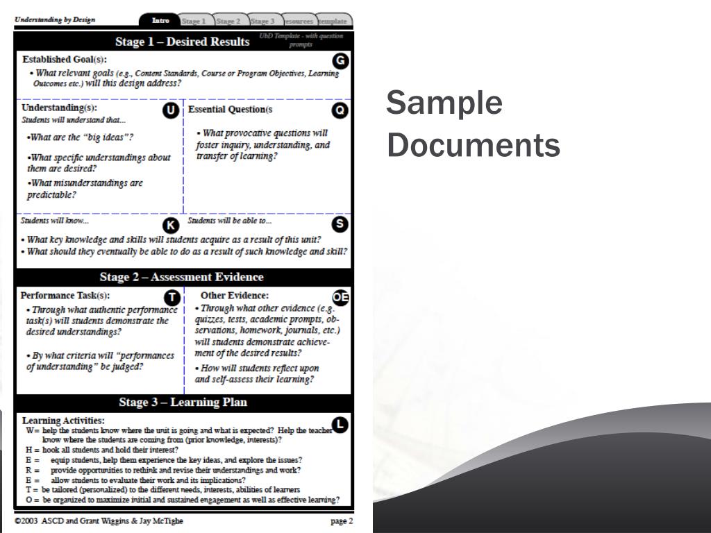 Understanding by Design • “To begin with the end in mind means to start with a clear understanding of your destination. It means to know where you’re going so that you better understand where you are now so that the steps you take are always in the right direction.” • - Stephen R. Covey (The Seven Habits of Highly Effective People)