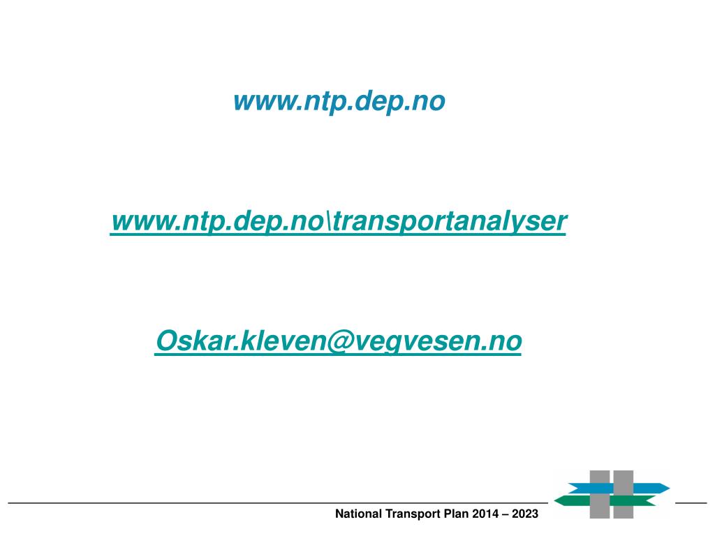 www.ntp.dep.no www.ntp.dep.no\transportanalyser Oskar.kleven@vegvesen.no National Transport Plan 2014 – 2023