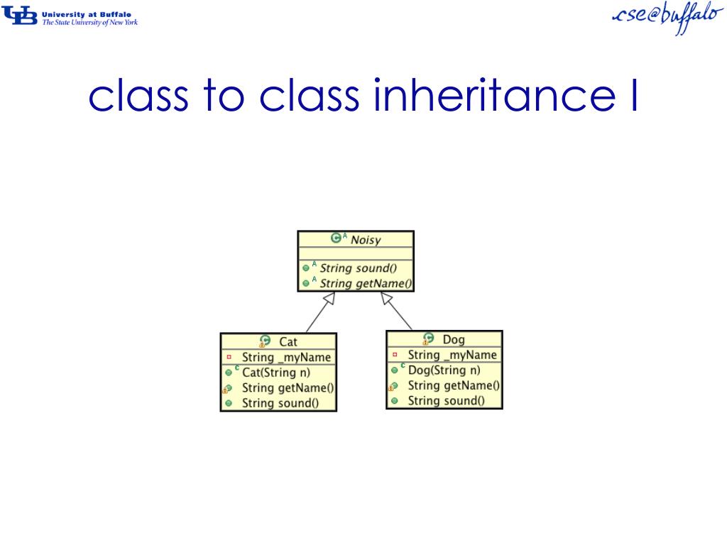 CSE115: Introduction to Computer Science I. Dr. Carl Alphonce 219 Bell Hall 645-4739 alphonce@buffalo.edu. Agenda. Inheritance – our last relationship! Primitives & control structures. Example. What’s wrong with this code?. package noninheritance ; public class Cat implements Noisy {