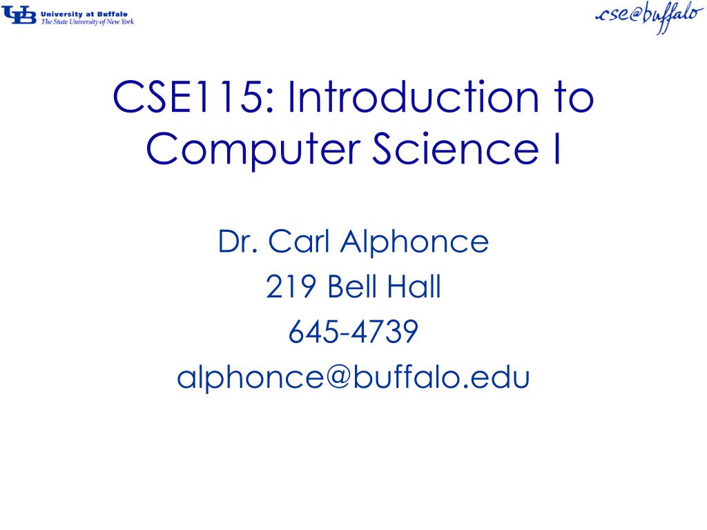 CSE115: Introduction to Computer Science I Dr. Carl Alphonce 219 Bell Hall 645-4739 alphonce@buffalo.edu