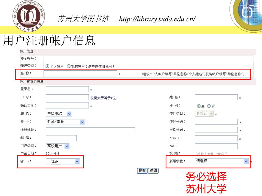 用户注册帐户信息 务必选择苏州大学