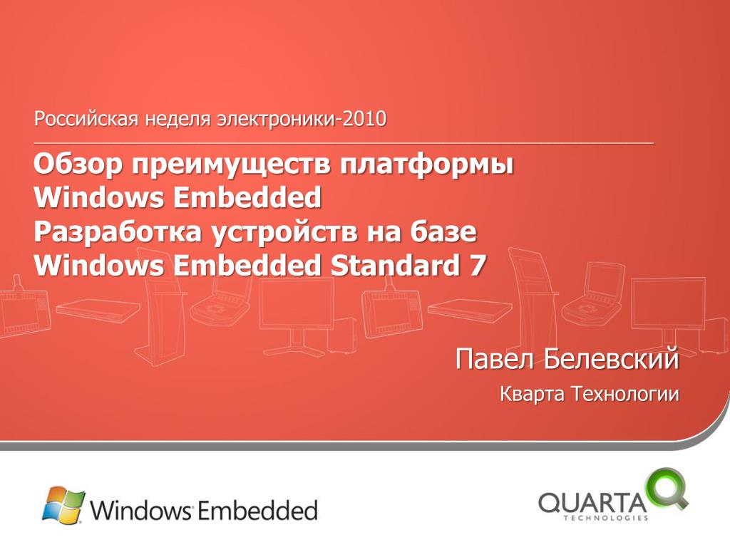 Обзор преимуществ платформы Windows EmbeddedРазработка устройств на базеWindows Embedded Standard 7 Павел Белевский Кварта Технологии
