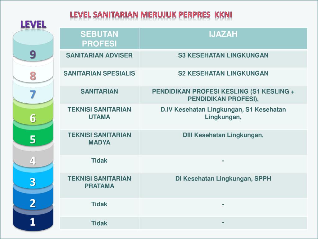 LEVEL SANITARIAN MERUJUK Perpres KKNI Level 9 8 7 6 5 4 3 2 1
