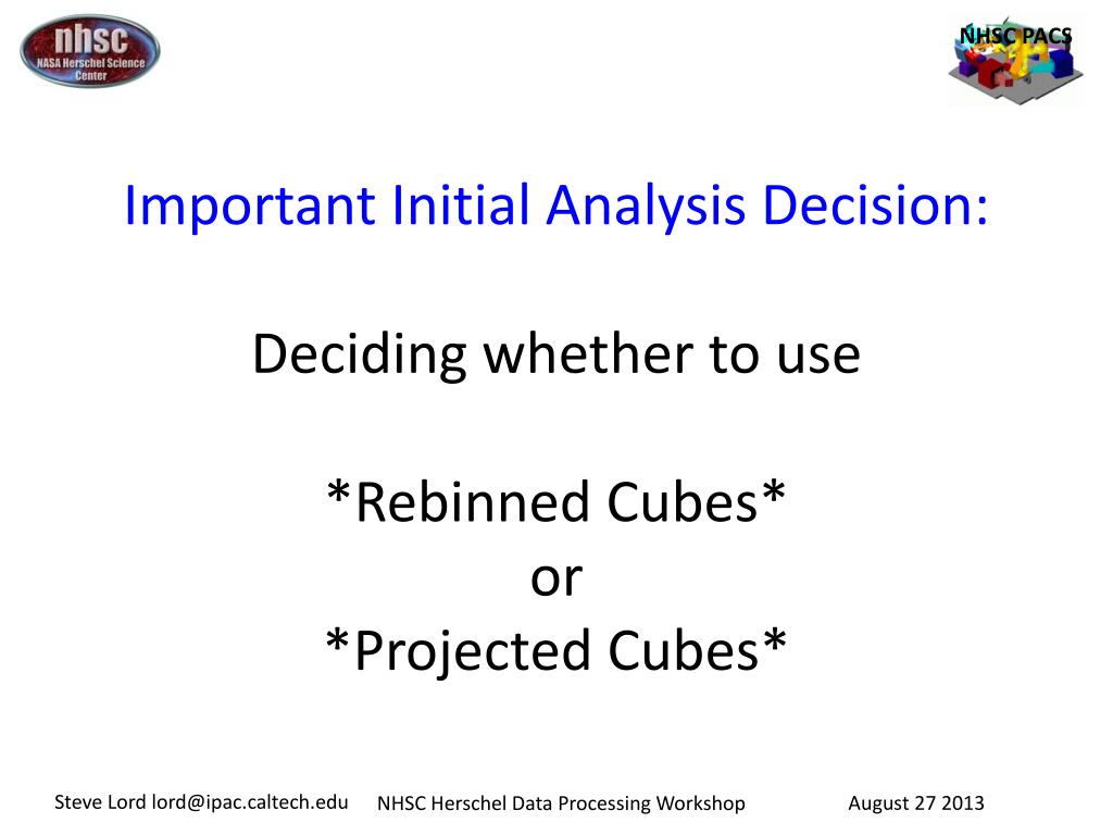 Important Initial Analysis Decision:Deciding whether to use*Rebinned Cubes*or *Projected Cubes*