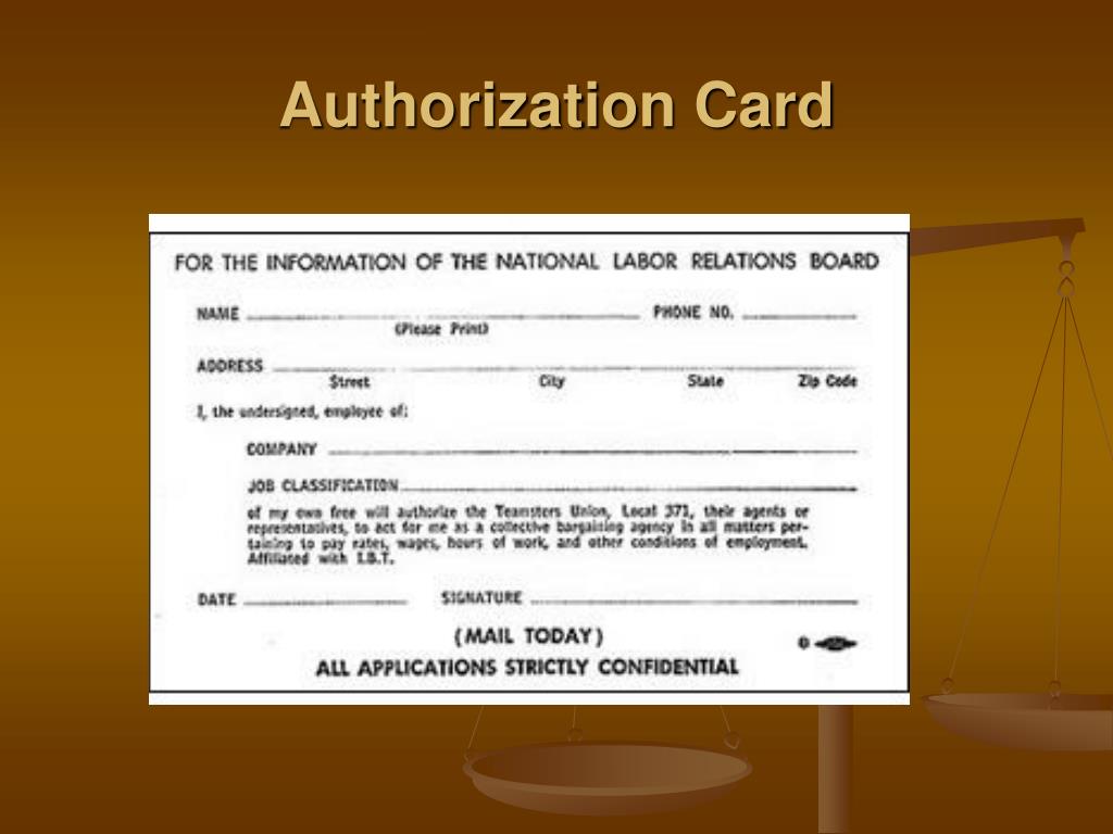 Authorization Card Campaign • A Union Authorization Card is a card that authorizes the Union to negotiate with an employer over your wages, hours and other conditions of work. • Under current law, signing a union authorization card does NOT obligate an employee to vote for the union in a certification election.