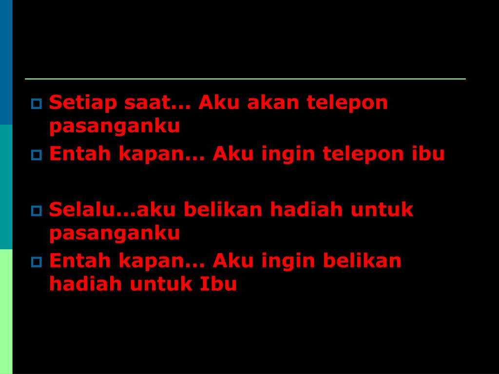 Setiap saat... Aku akan telepon pasanganku • Entah kapan... Aku ingin telepon ibu • Selalu...aku belikan hadiah untuk pasanganku • Entah kapan... Aku ingin belikan hadiah untuk Ibu