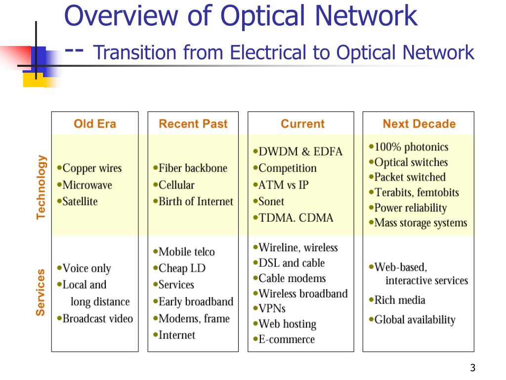 Overview of Optical Network-- Transition from Electrical to Optical Network