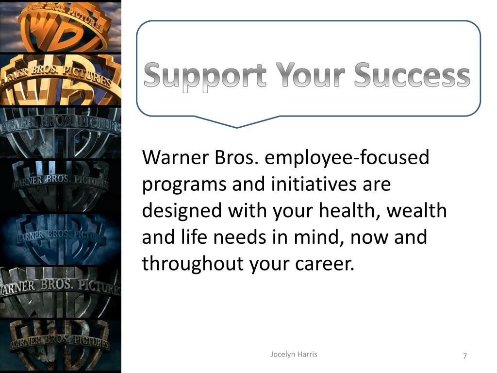 Support Your Success Warner Bros. employee-focused programs and initiatives are designed with your health, wealth and life needs in mind, now and throughout your career. Jocelyn Harris