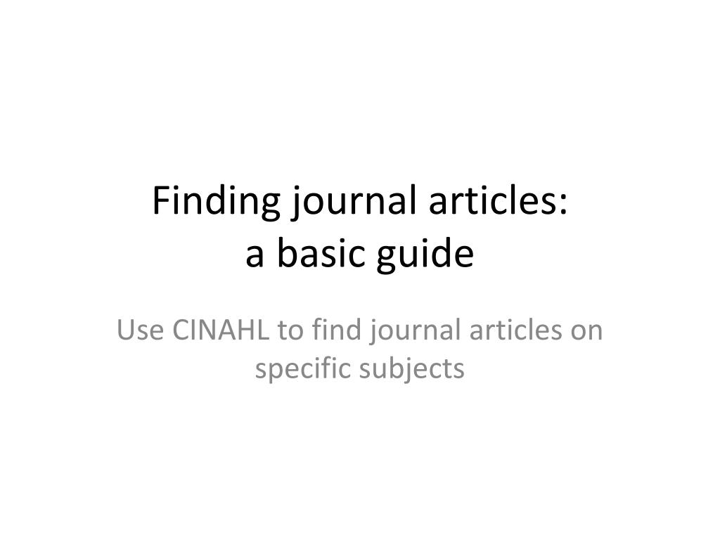 Finding journal articles:a basic guide Use CINAHL to find journal articles on specific subjects