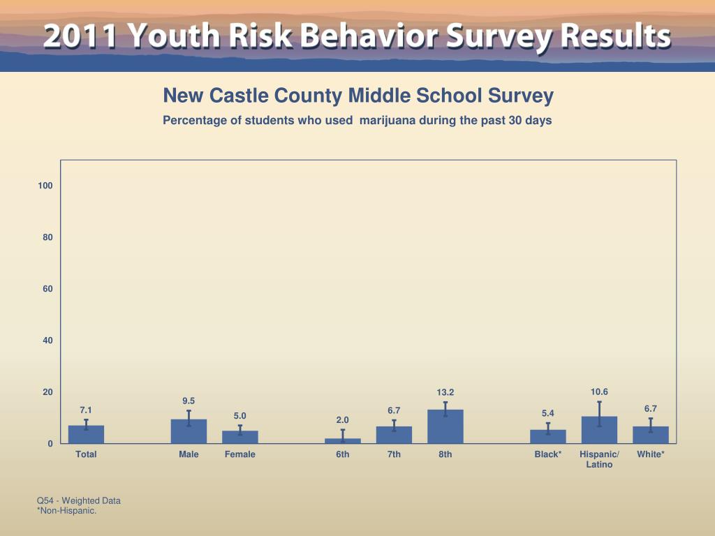 New Castle County Middle School Survey Percentage of students who used marijuana during the past 30 days Q54 - Weighted Data *Non-Hispanic.