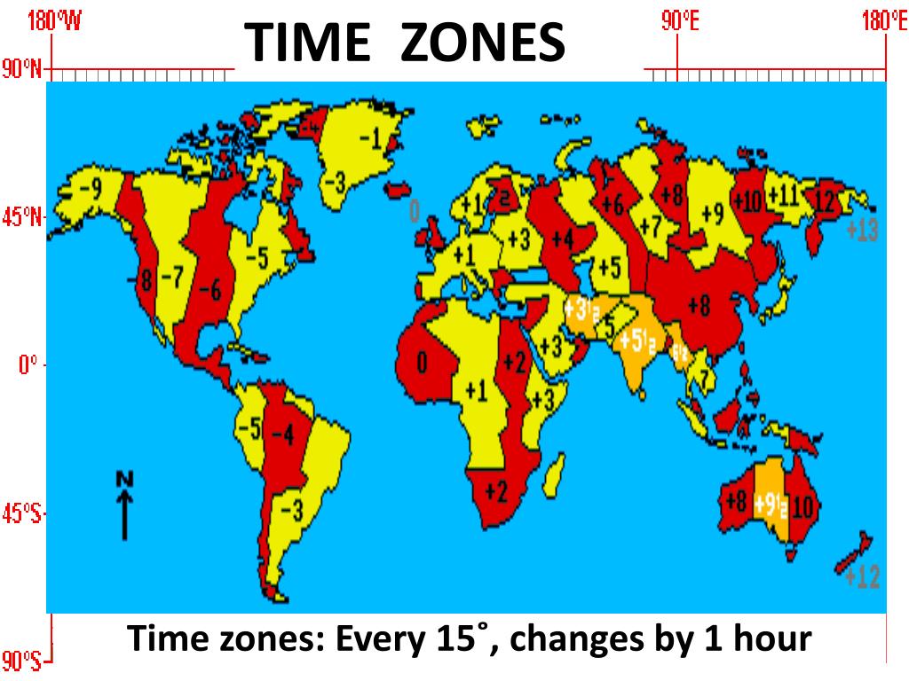 TIME ZONES Time zones: Every 15˚, changes by 1 hour